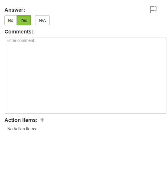 - If necessary, the assessor can flag a factor for further review by clicking the flag icon on the top right of the page, This will add a small flag next to the item in the self assessment menu, and will allow the factor to be returned when filtering for flagged factors