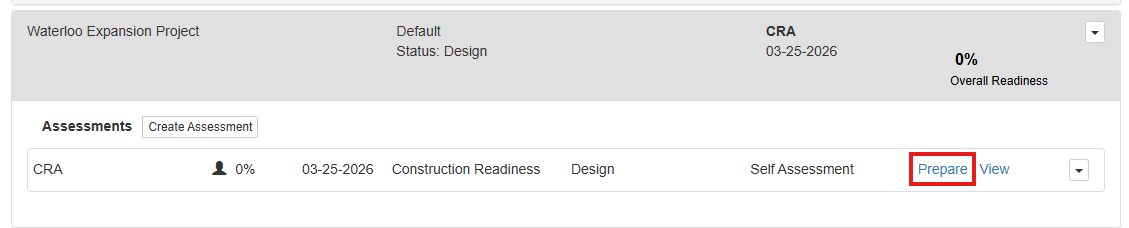To begin, click the prepare link within a CRA Self Assessment. This will open the assessment.