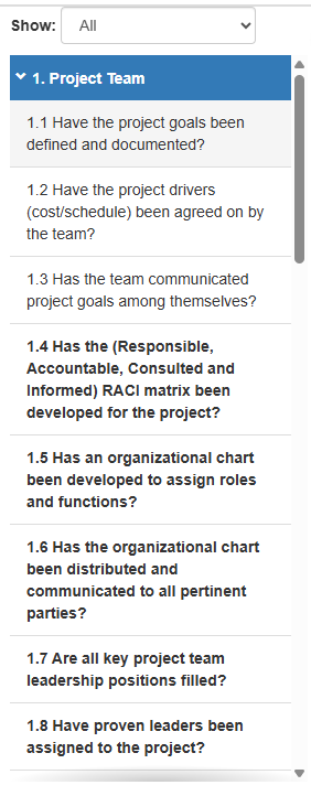 - All - This is the default menu view, all assessment factors are displayed in order
