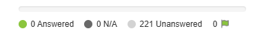 The assessment progress bar is used to help the assessor track their progress when completing a self assessment. As the assessor answers each factors, the progress bar updates tot show how many have been completed, marked as not applicable, and how many as still unanswered. Additionally, the flag icon will list how many assessment factors have been marked for further review.