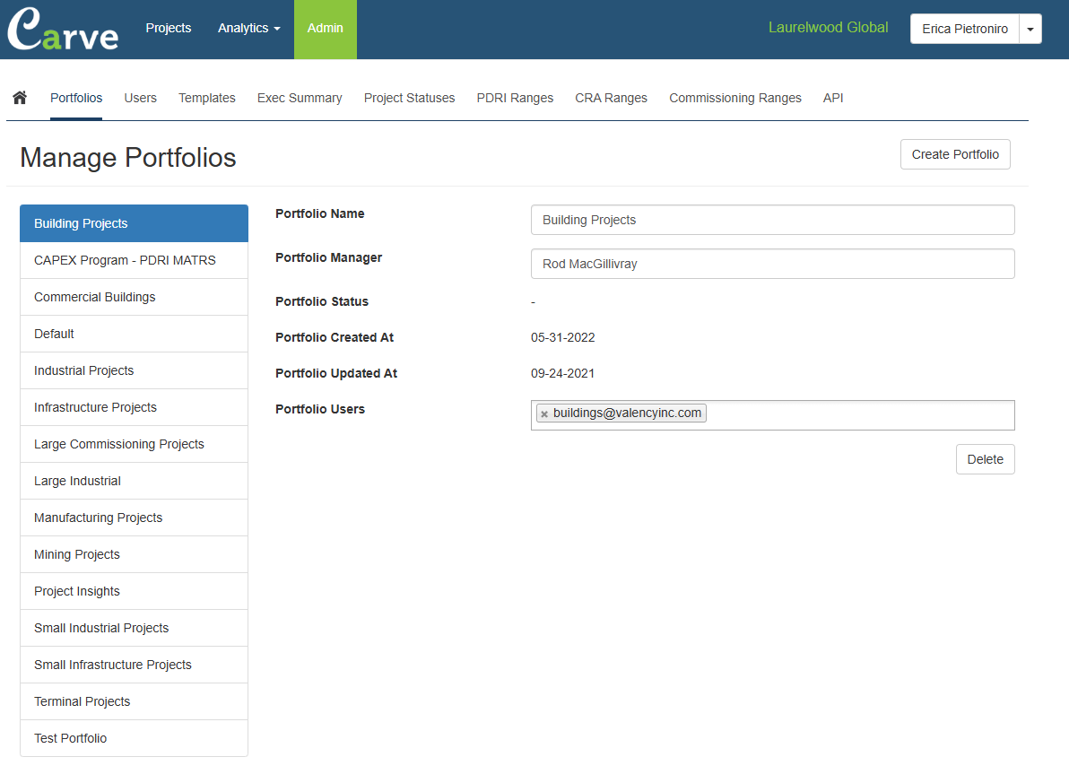 From the Admin tab, select Portfolios. Click the Create Portfolio button (top right-hand corner). Enter the following: Portfolio Name Portfolio Manager (optional) 4. Click Next. Portfolios are not restricted to a single PDRI template type. A ...