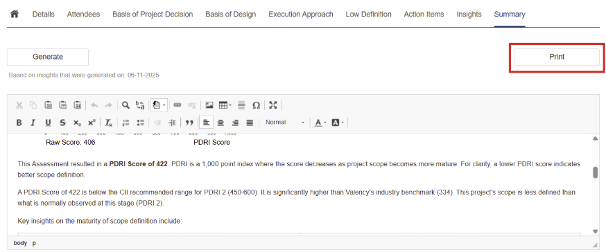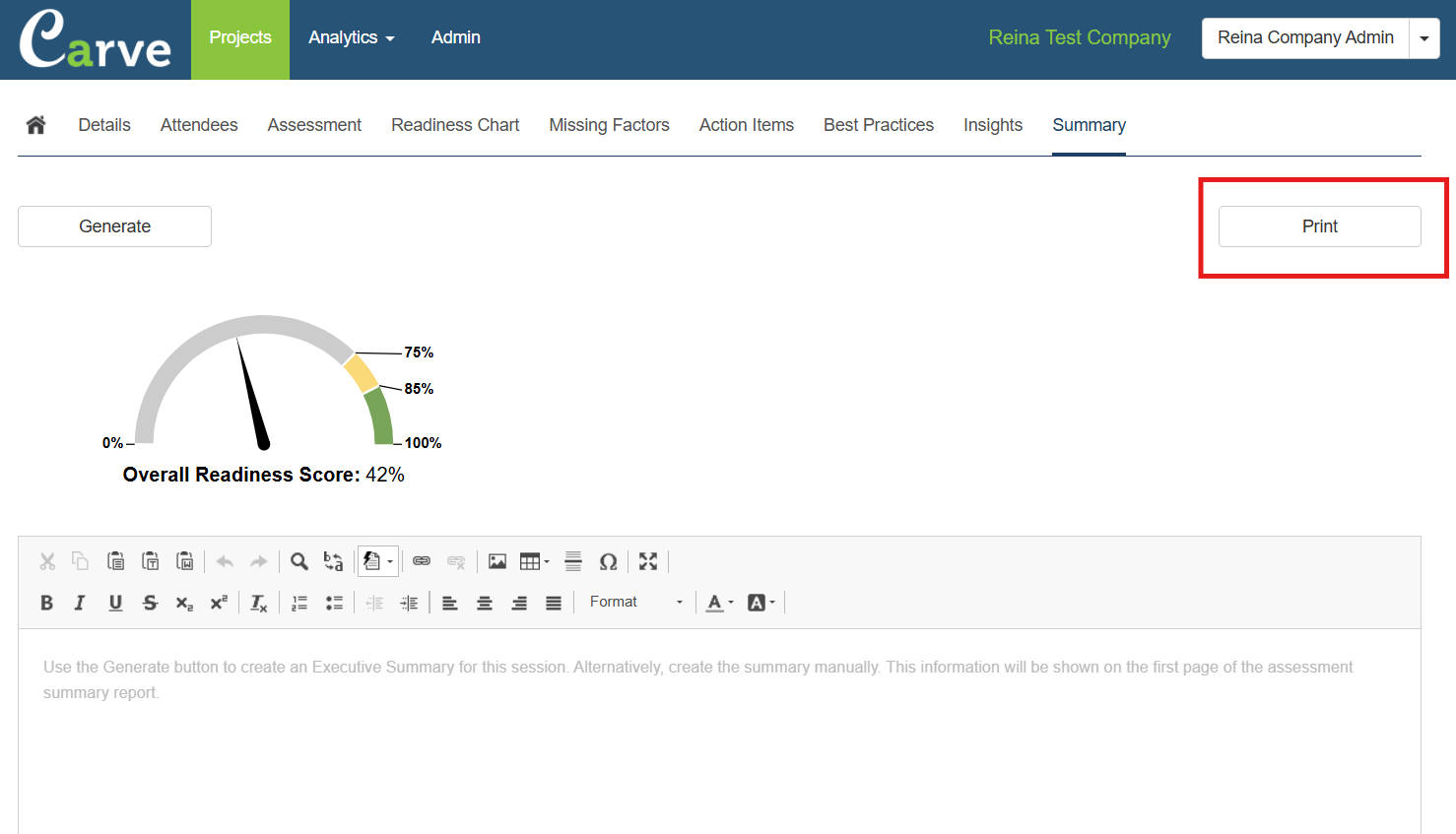 To create your Executive Summary after the assessment Insights have been properly reviewed and selected