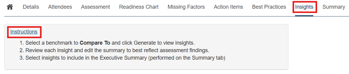 From the Prepare mode of a CRA assessment, navigate to the Insights page.