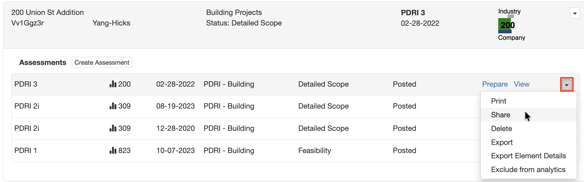 Within Carve, Assessments are contained in Projects, which can be assigned to Portfolios. Projects can contain Project Definition Rating Index (PDRI) Assessments, Construction Readiness Assessments (CRA), and Commissioning & Operational Readiness ...